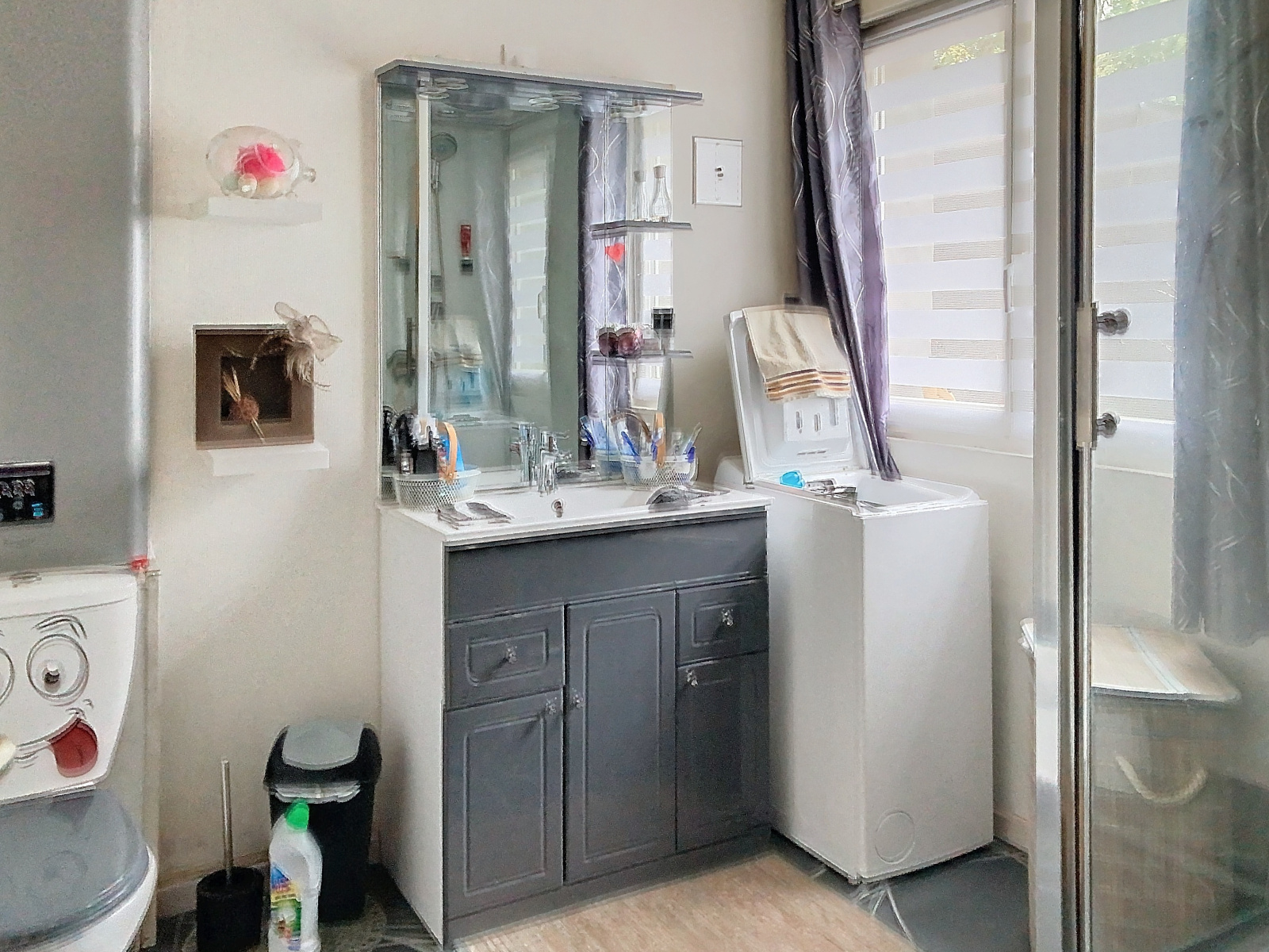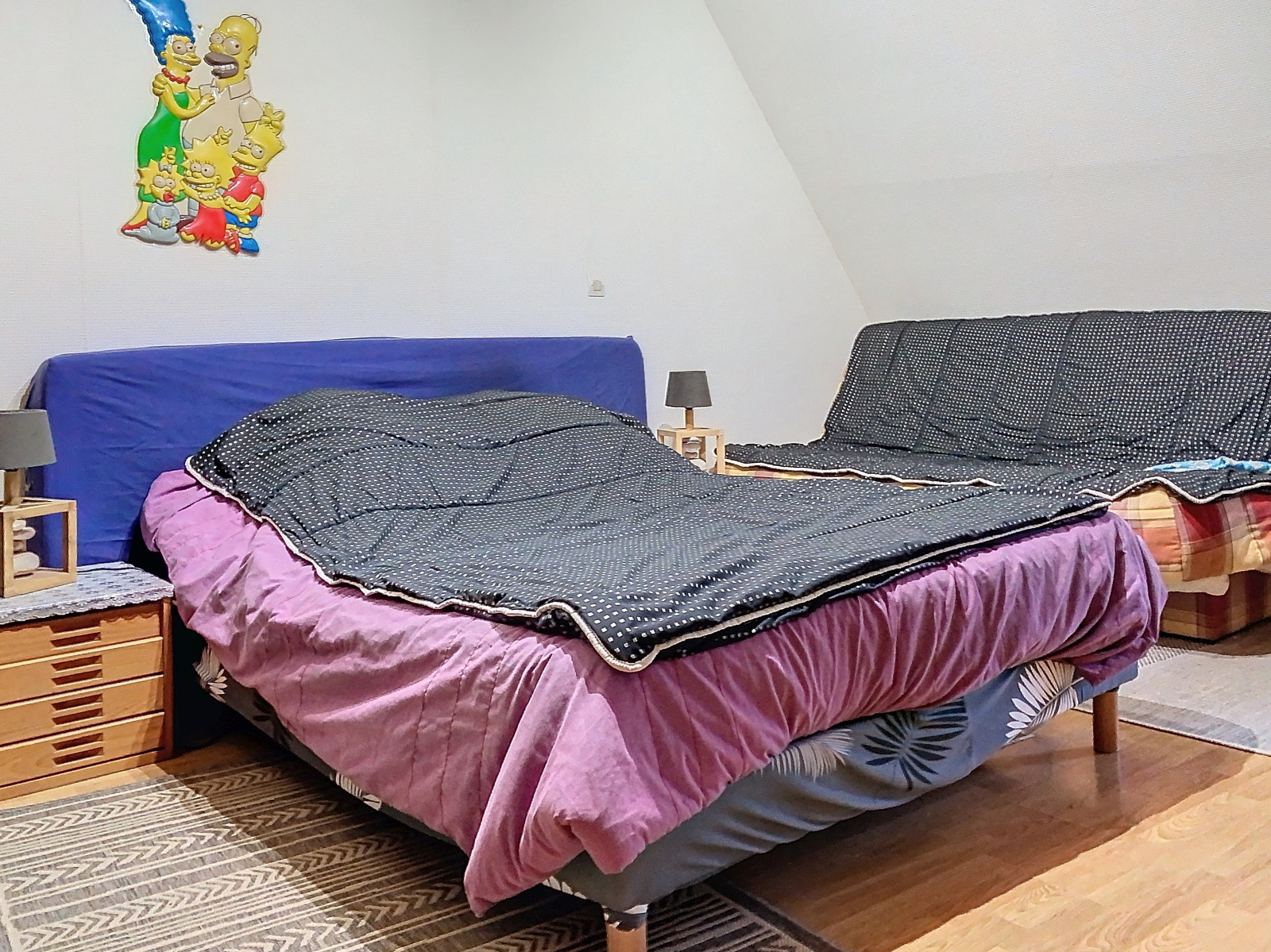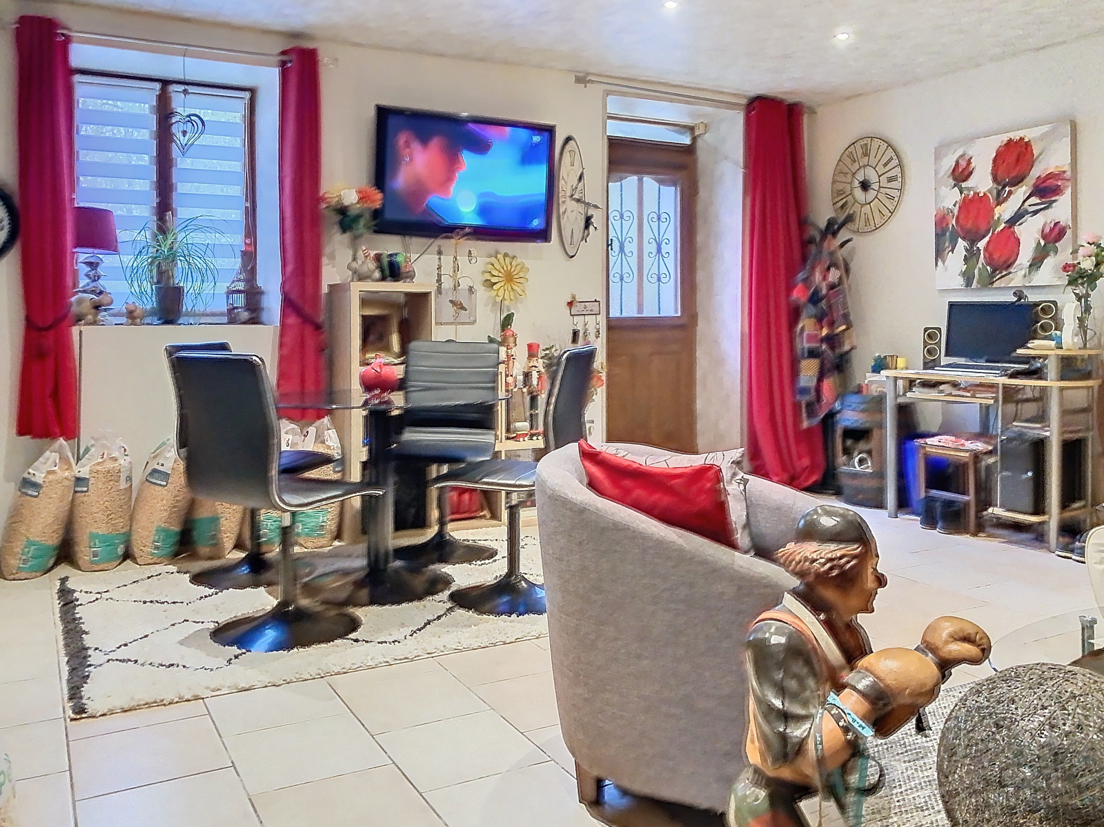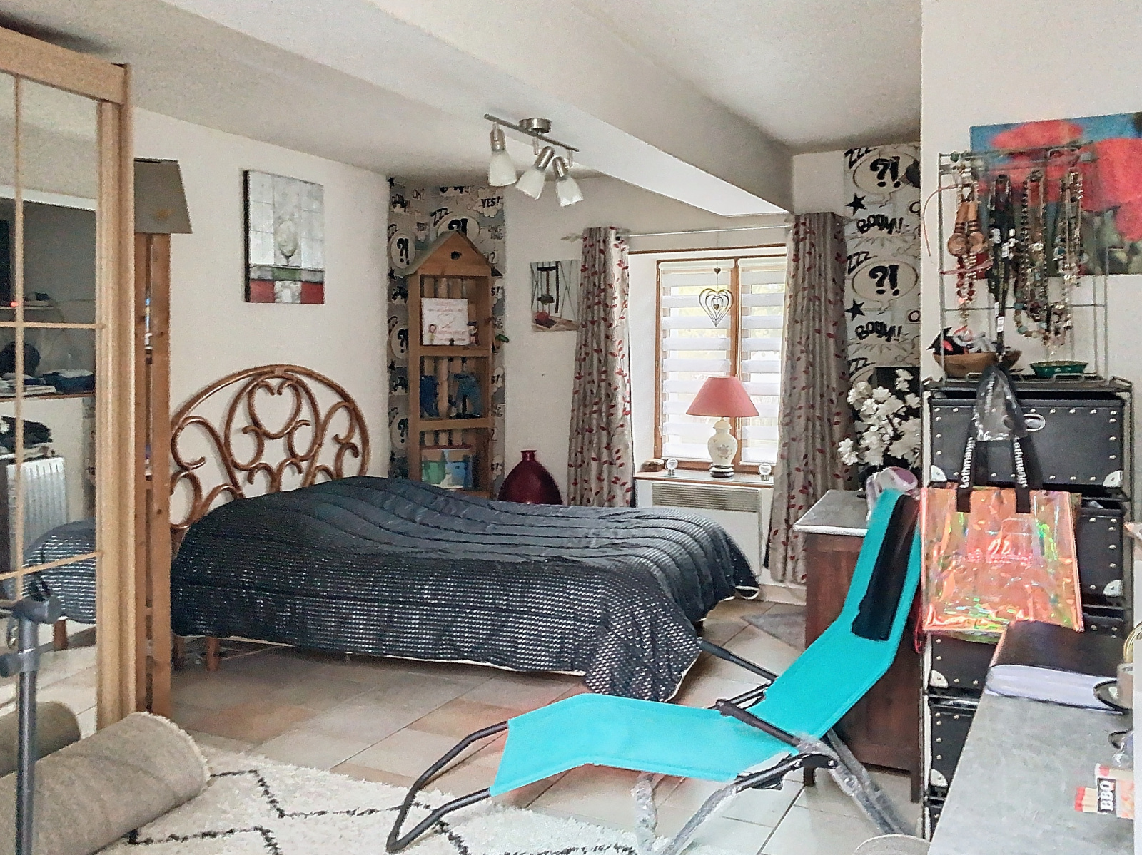 En bon état général, elle offre un vaste séjour avec poêle à granulé, une cuisine séparée et semi-équipée, ainsi qu'une salle d'eau avec WC et une grande chambre avec rangements