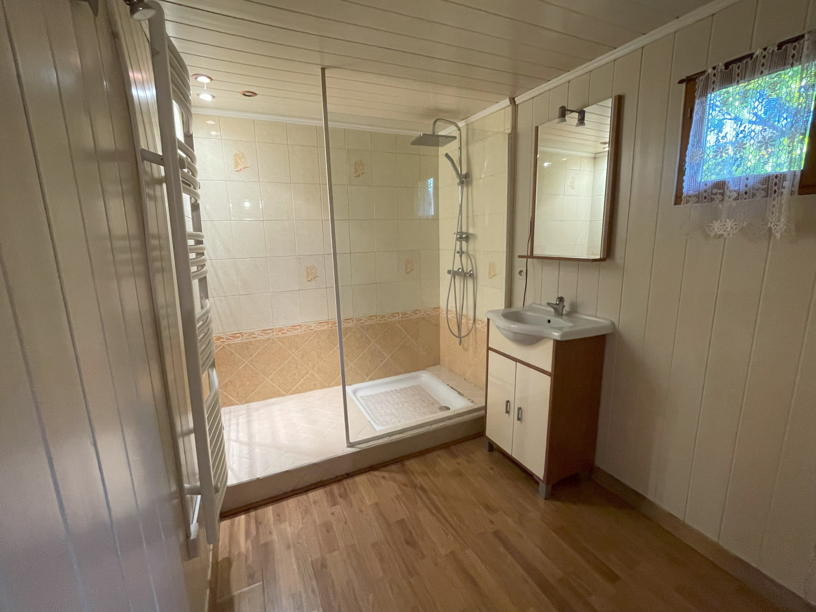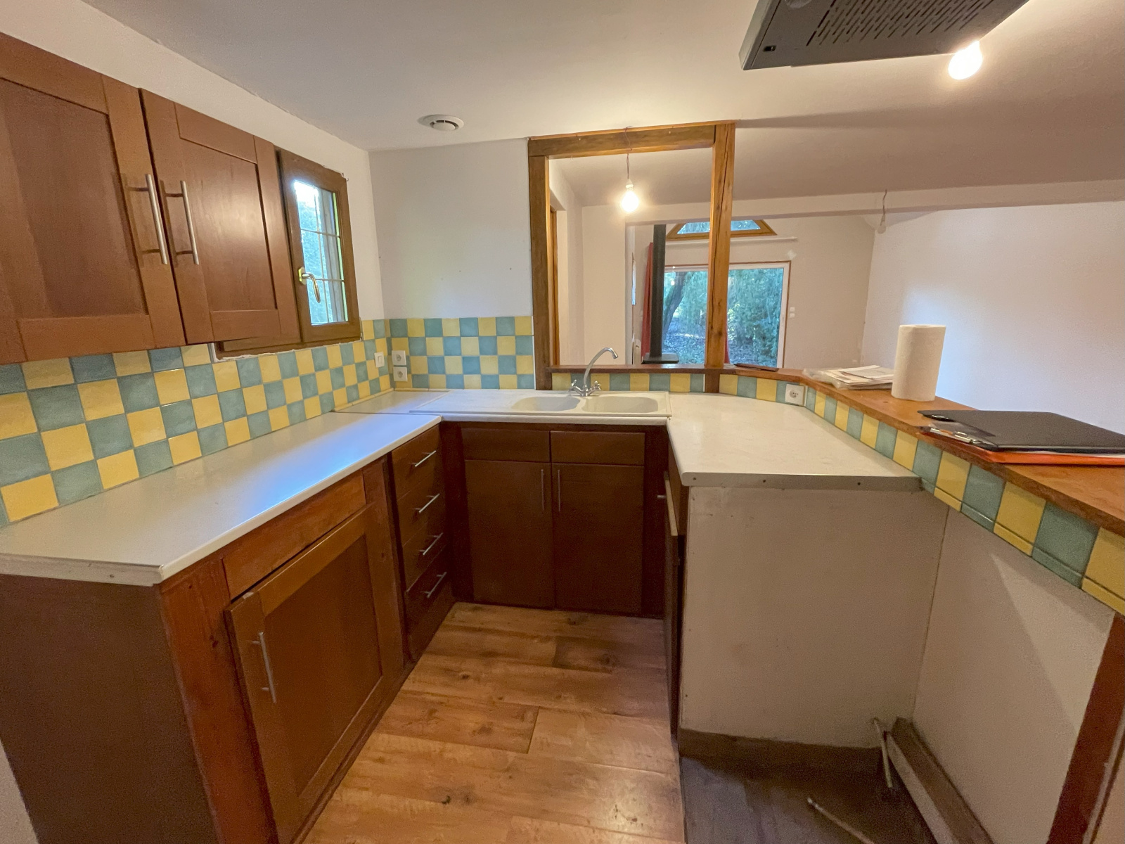 Une grande pièce de vie avec séjour et salon, agrémentée d'un poêle à bois Une cuisine conviviale Un wc indépendant Une chambre douillette Une salle d'eau fonctionnelle