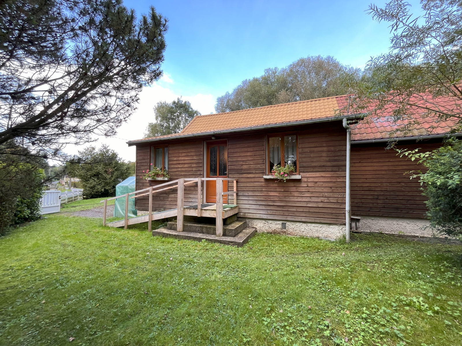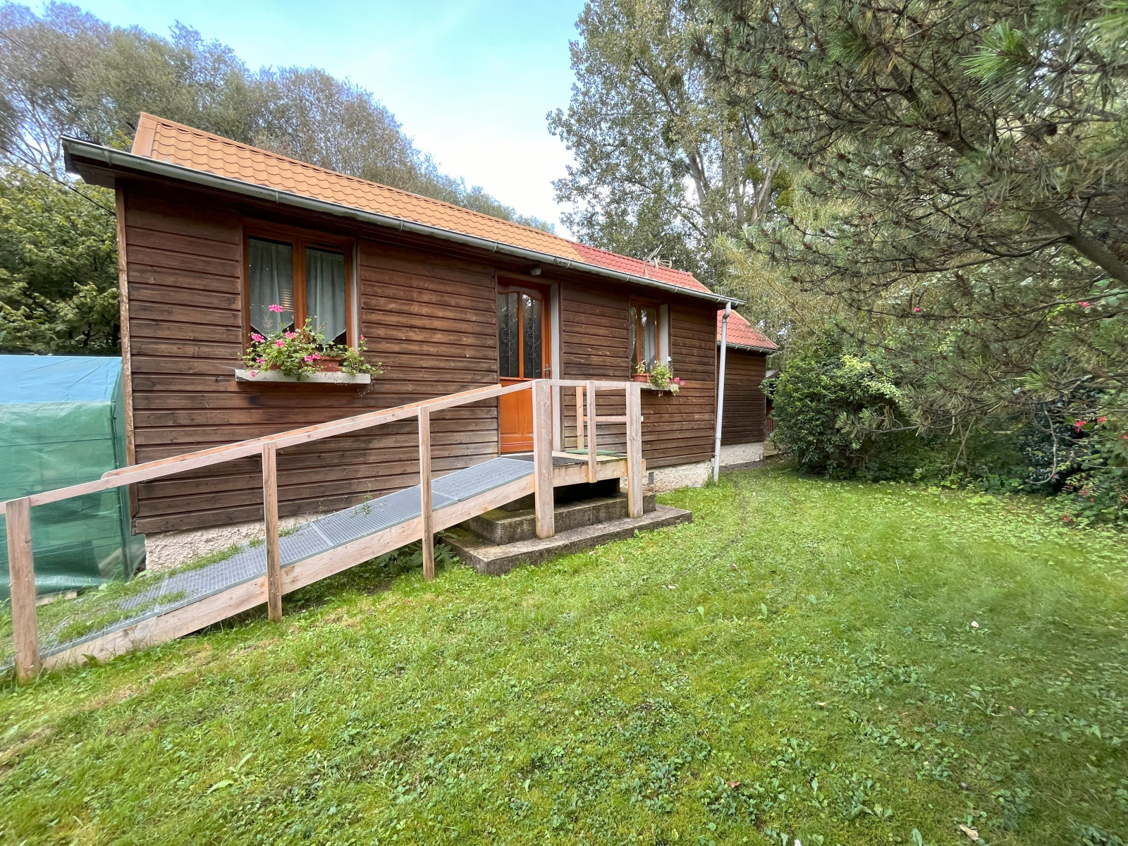 À l'extérieur, profitez de deux petits chalets équipés en électricité, le tout sur un terrain clos et arboré de 915 m².
