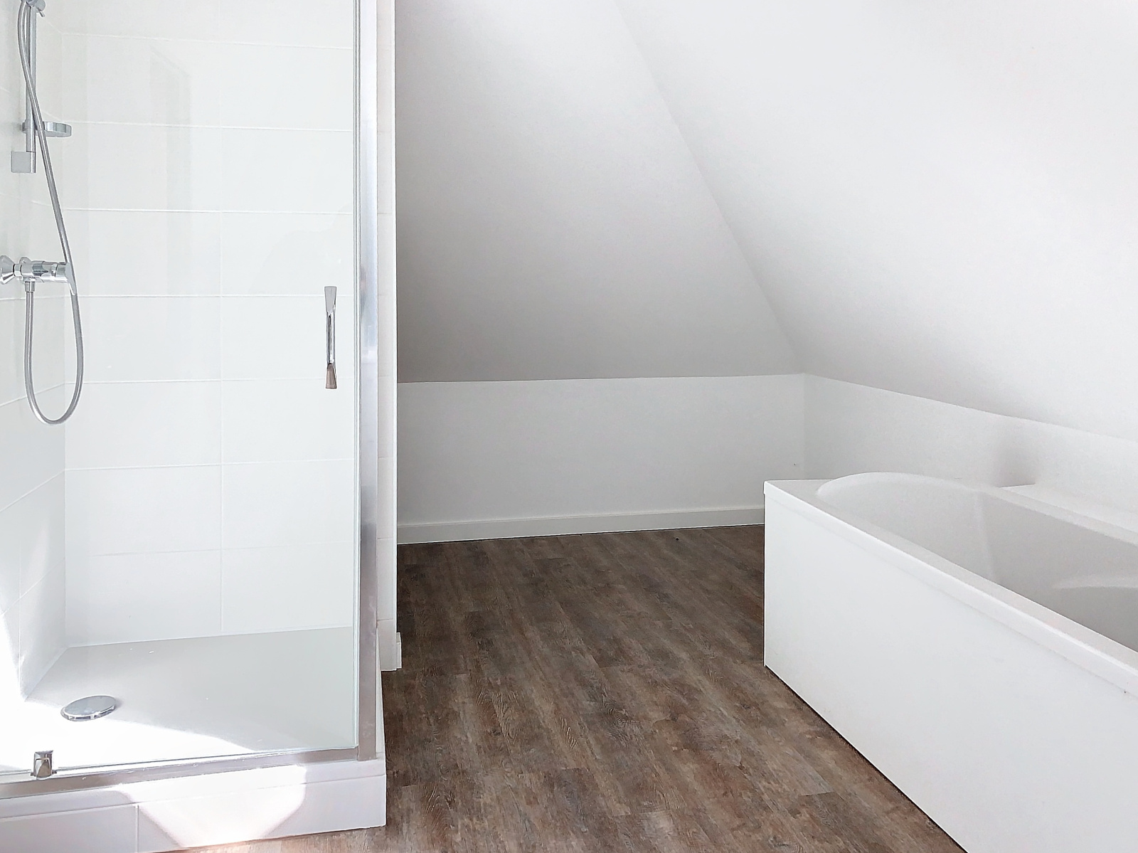À l'étage, vous trouverez un palier desservant 2 chambres, une salle de bains avec baignoire et douche, ainsi qu'un WC.