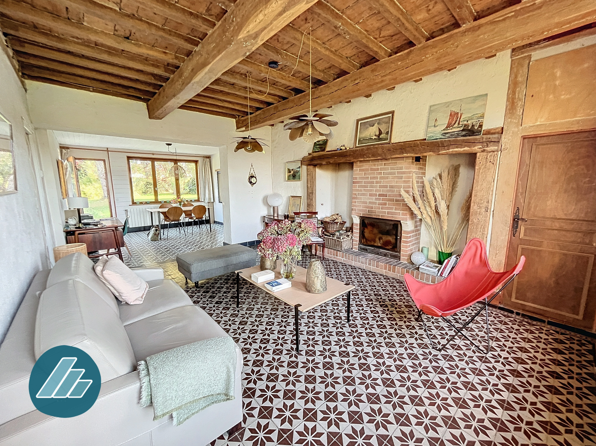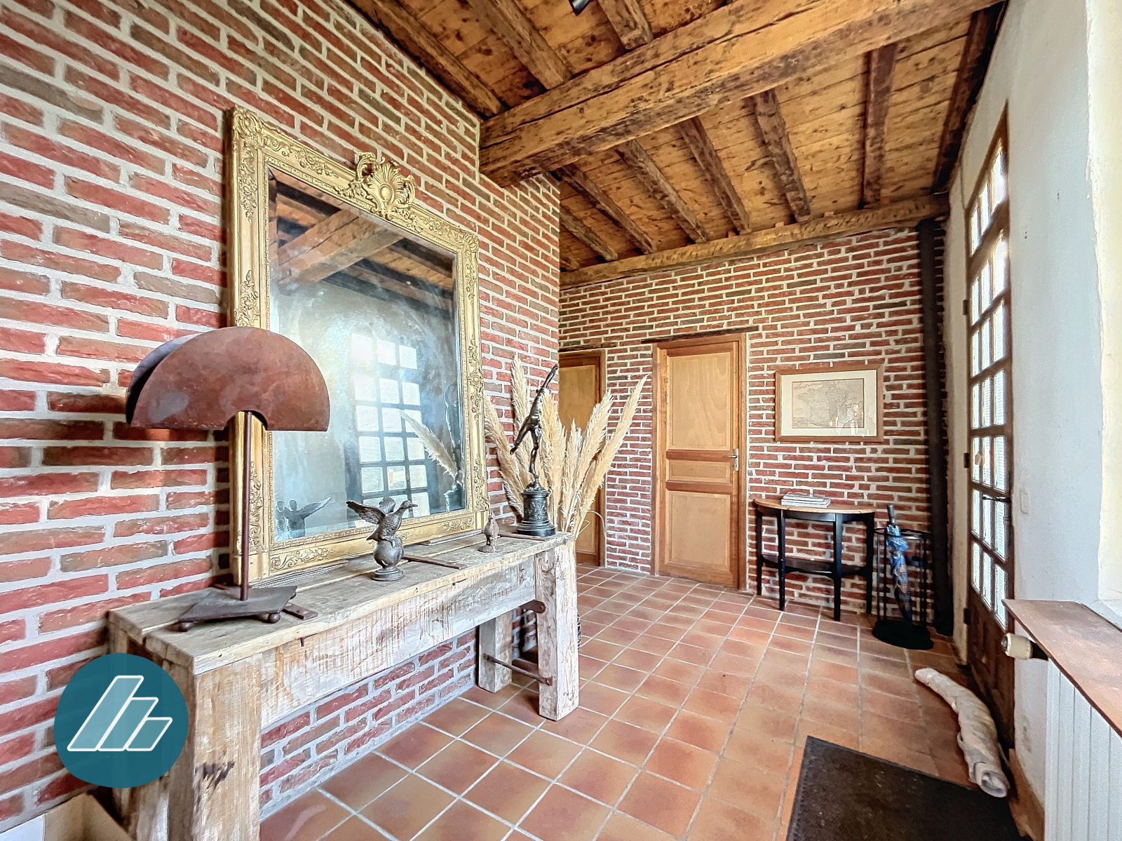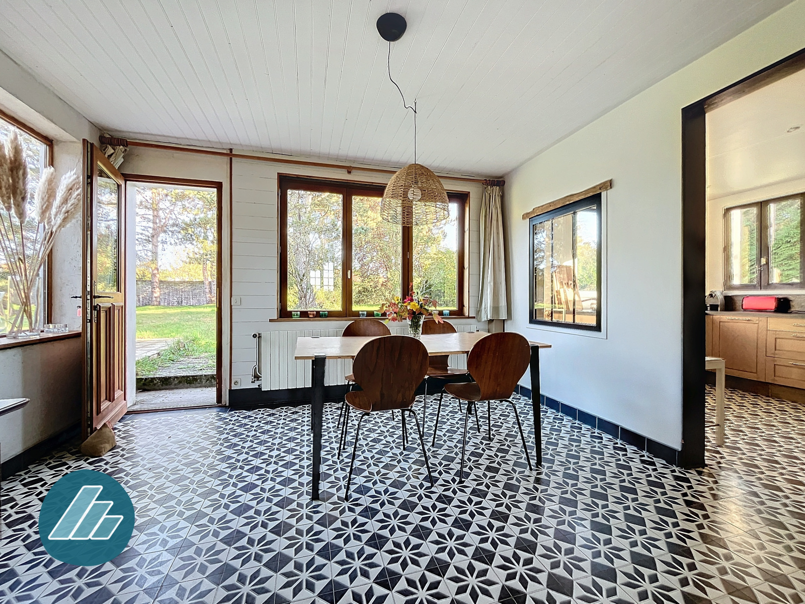 Construite en briques et couverte en ardoises, cette charmante demeure est nichée dans un village paisible, à la lisière de la forêt, sur un terrain clos et arboré de 3650 m².