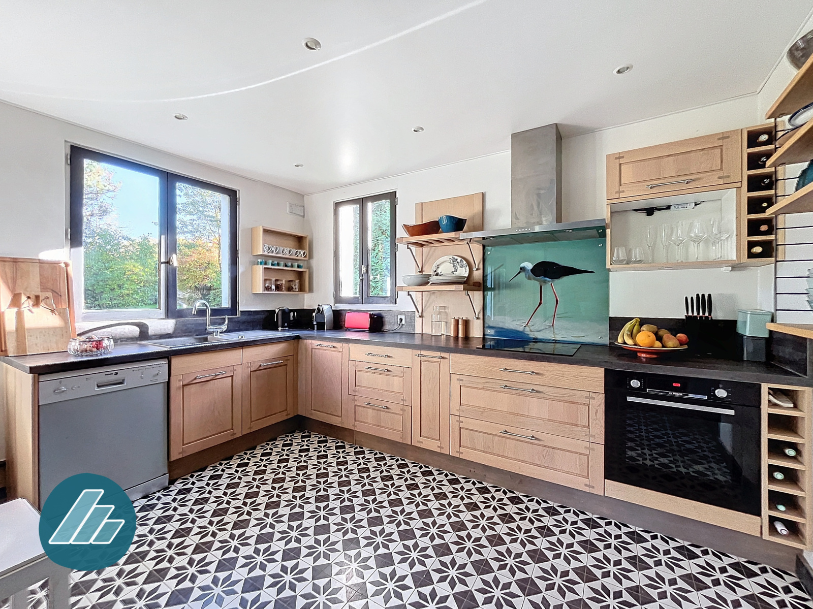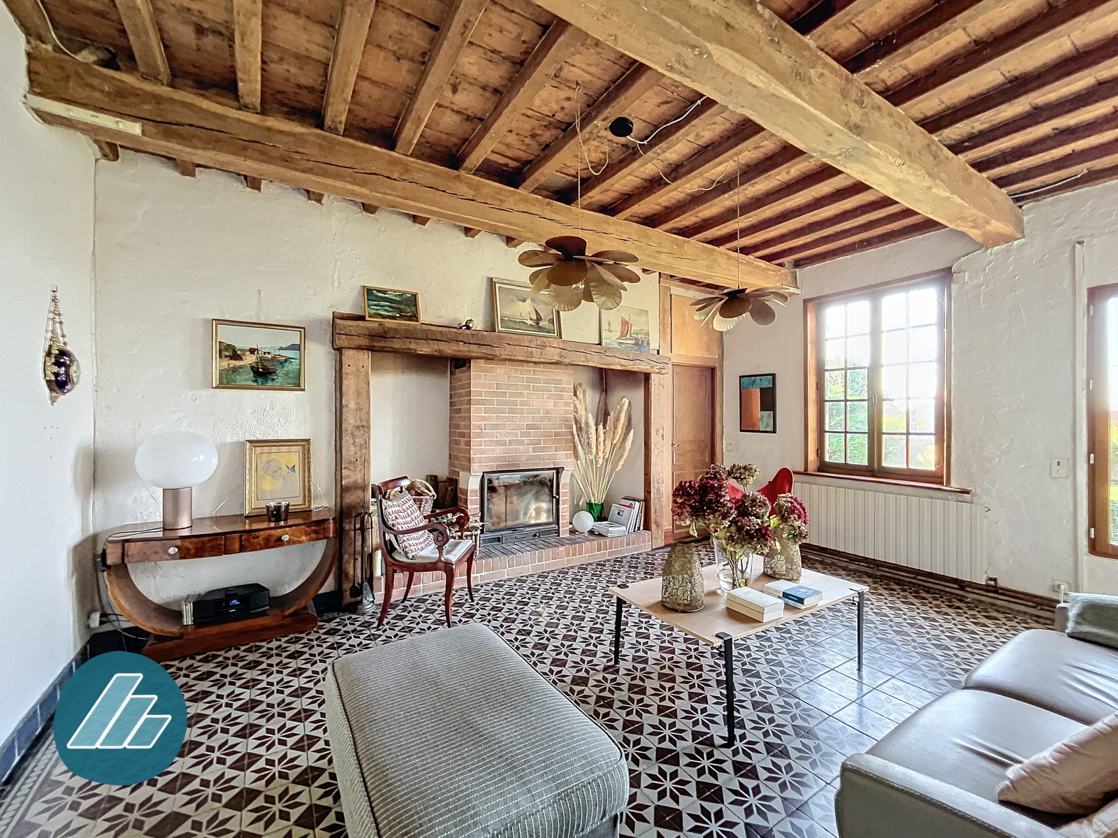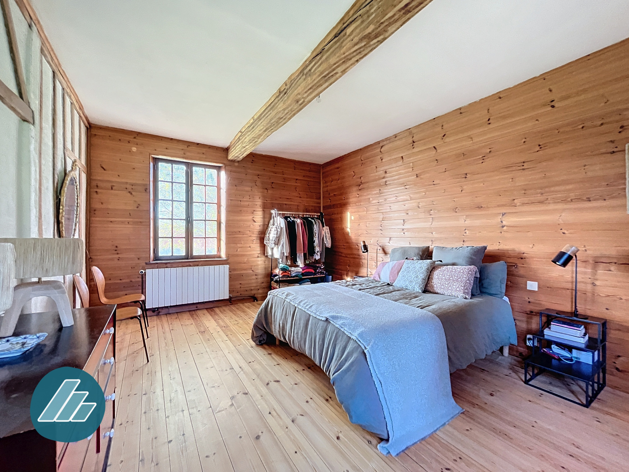 Construite en briques et couverte en ardoises, cette charmante demeure est nichée dans un village paisible, à la lisière de la forêt, sur un terrain clos et arboré de 3650 m².